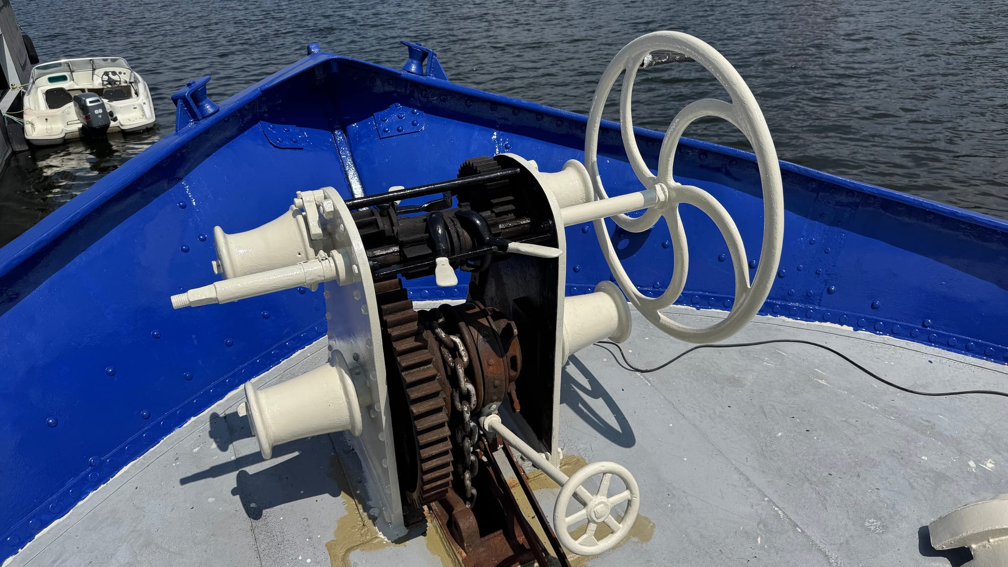 The weather was quite warm outside (30+ on several days), so we were avoiding sanding the outside, but that's imminent. We prepped and painted the anchor windlass, which now only has one coat left to apply. With cooler weather and a bit of rain (which helps keep the dust down), this week, we'll tackle prepping and sanding the rest of the side panels.