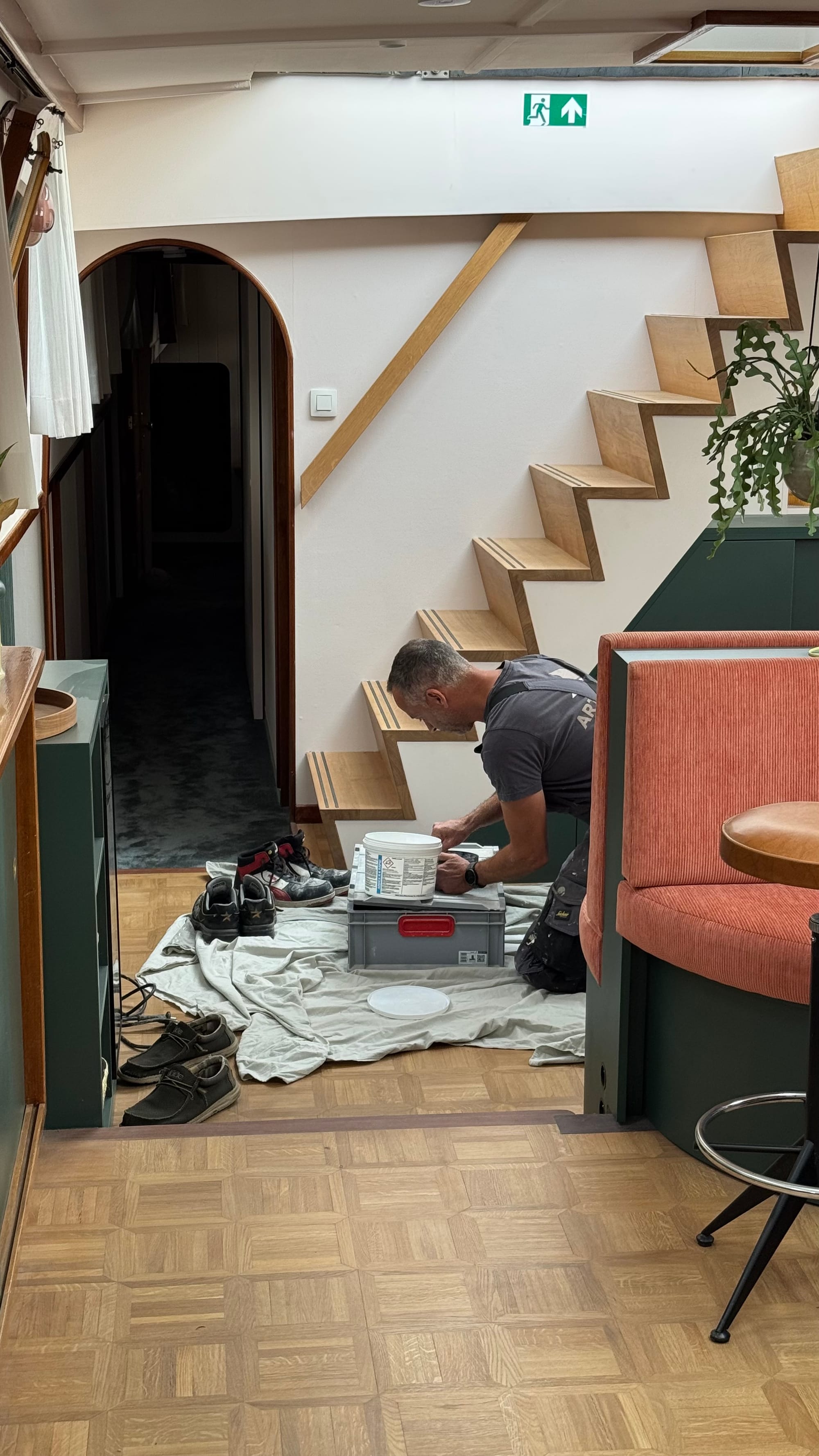 Davy and Bjorn from Artestuc returned to patch a couple of small issues in the bathrooms. Nothing major, just the sort of minor detail that you don't see until you're sitting on the toilet, or after fitting the trim and realise that it's not quite wide enough. They were cheery and efficient as always, and it's always a pleasure having them back aboard Delfine. They enjoyed seeing all the progress since they were last here.