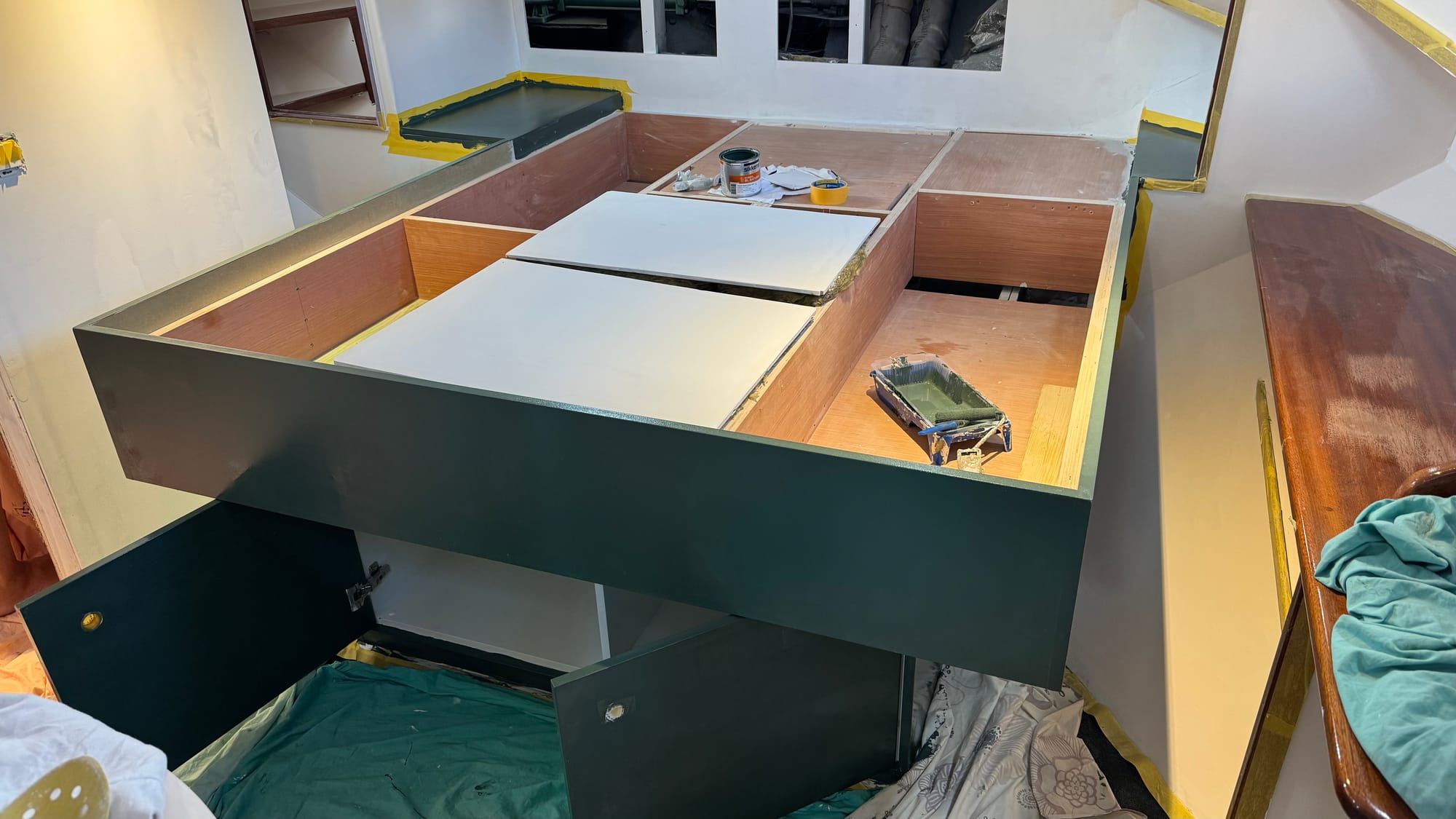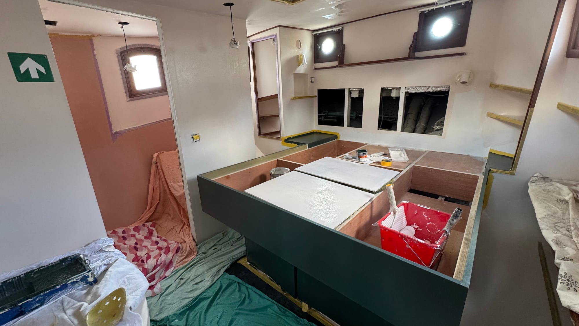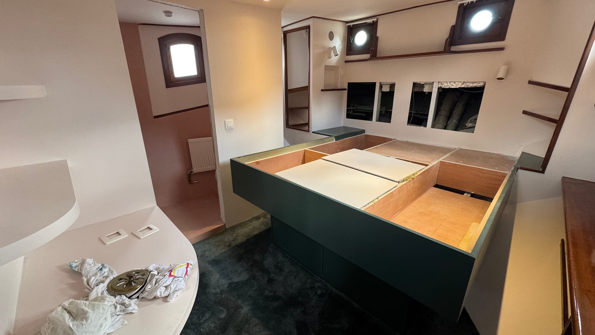 You always have to qualify anything on Delfine with (mostly) at the moment. Still, it's crucial to celebrate yet another significant milestone. The stern cabin is now (mostly) completed, as much as we can do of it ourselves.