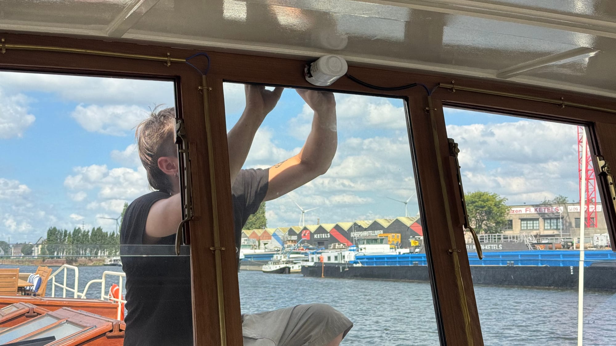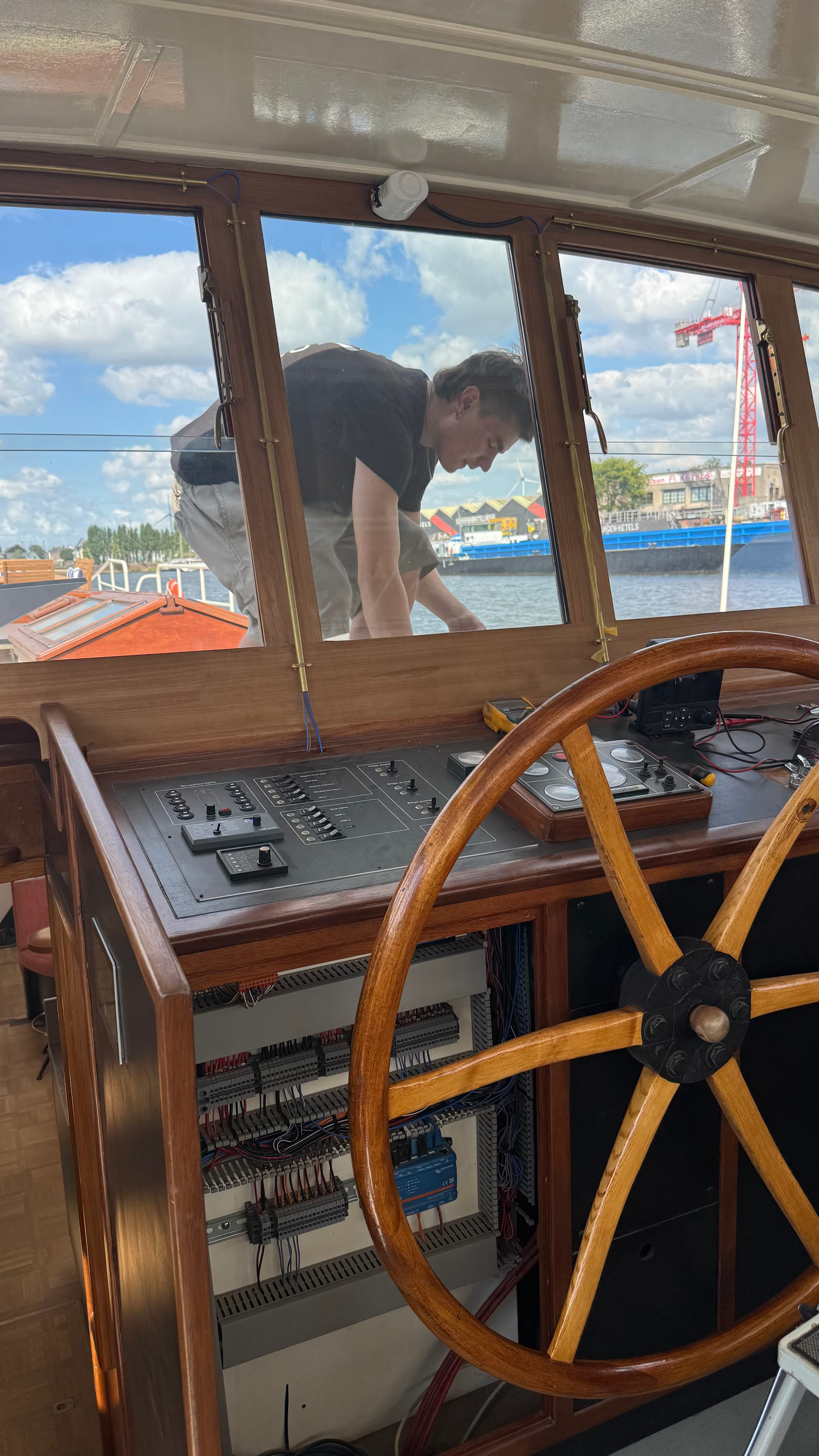 Jef returned on Wednesday to finish the tasks he could do. We have an anchor light and working windshield wipers now. To complete the electrical work, we need Martin. Unfortunately, he's still not well, so he can't complete the last two tasks yet, which require him to go into the engine room.