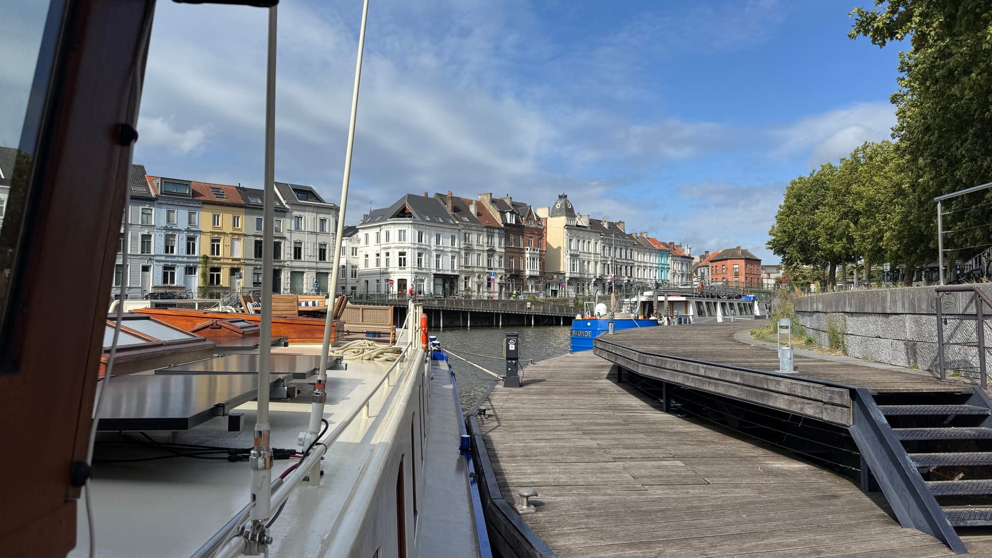 Thursday morning, we relocated Delfine back into the heart of Gent and Portus Ganda once again. It's becoming our second home! It takes Delfine to another level, having her visible on the dock, accessible, and in more pleasant surroundings.