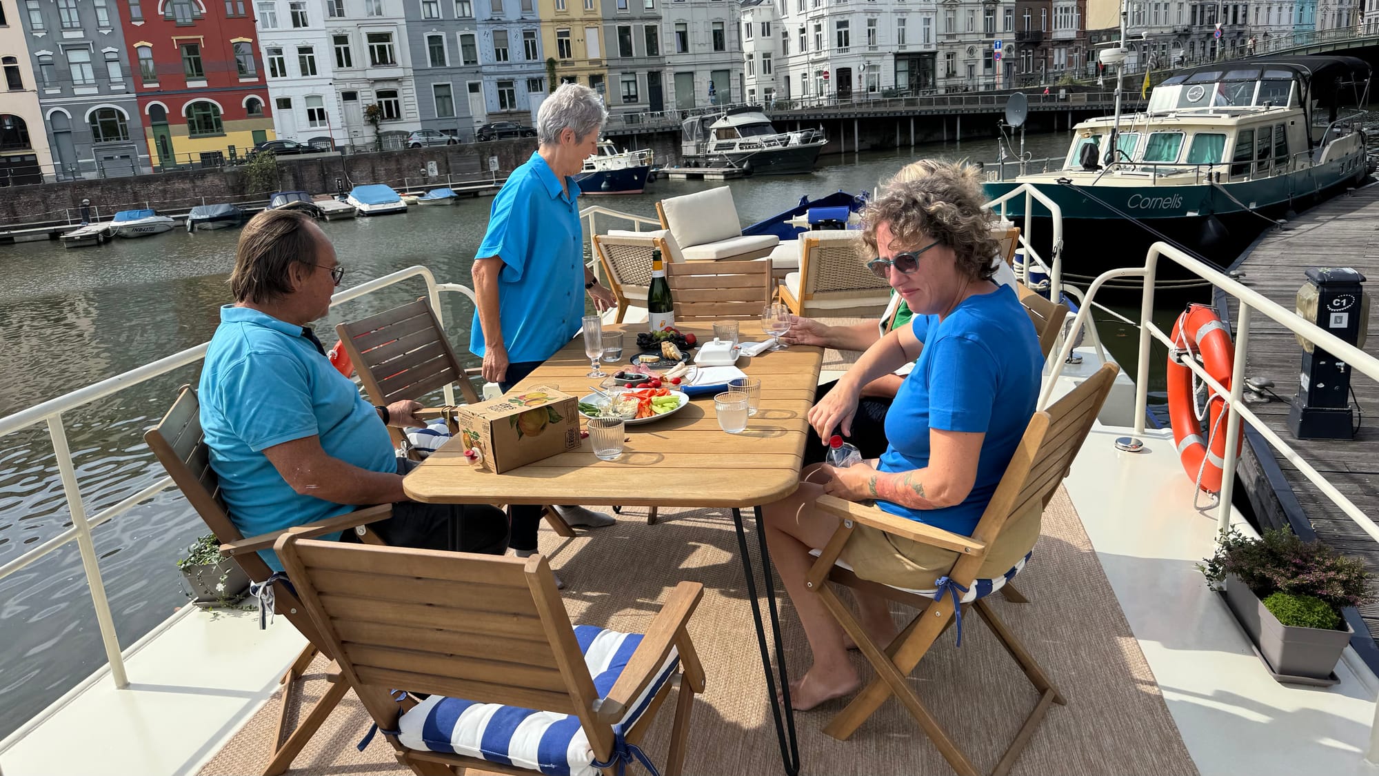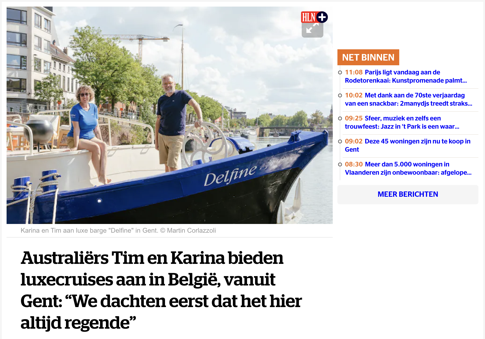 A short time after, back on Delfine, I received a phone call from Martin, a photographer for the Belgian newspaper HLN. He said Ief had passed on our details and asked if they could come and interview us and take a few photos. Of course, we said yes, and in the two hours before the party, we did a brief interview, and the next day, we were in the newspaper! (Here's a link to the article - in Dutch)